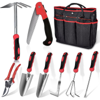 重型不锈钢红色园艺工具9件套 花园家用种花专业园艺工具套装