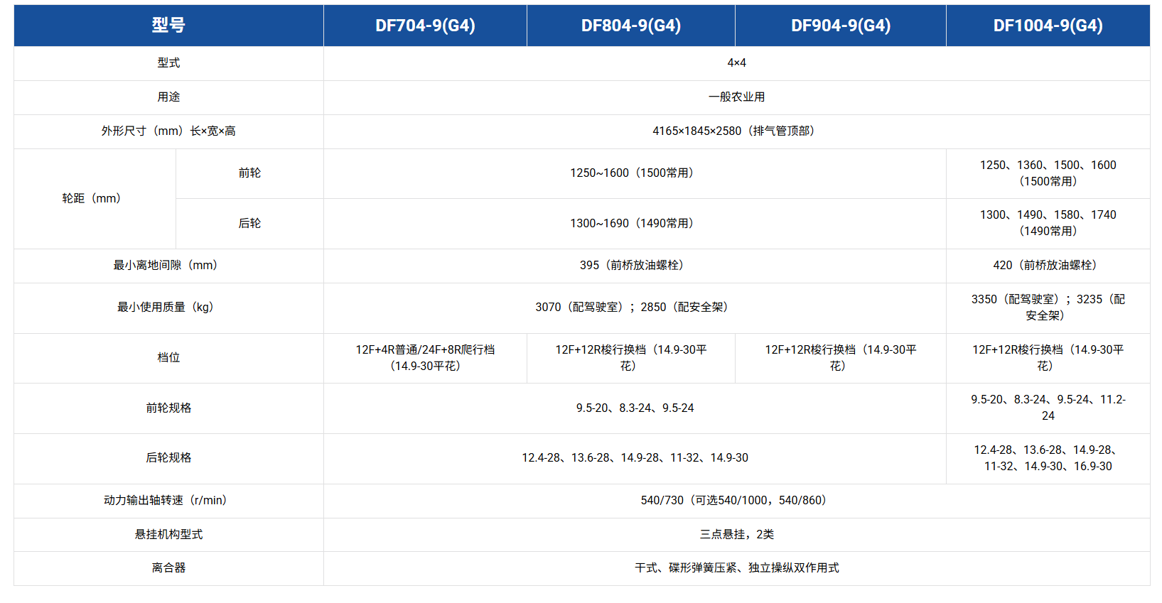 • 动力输出540/730、660/820、540/1000可选。可配套多种农机具,适应多工况作业;